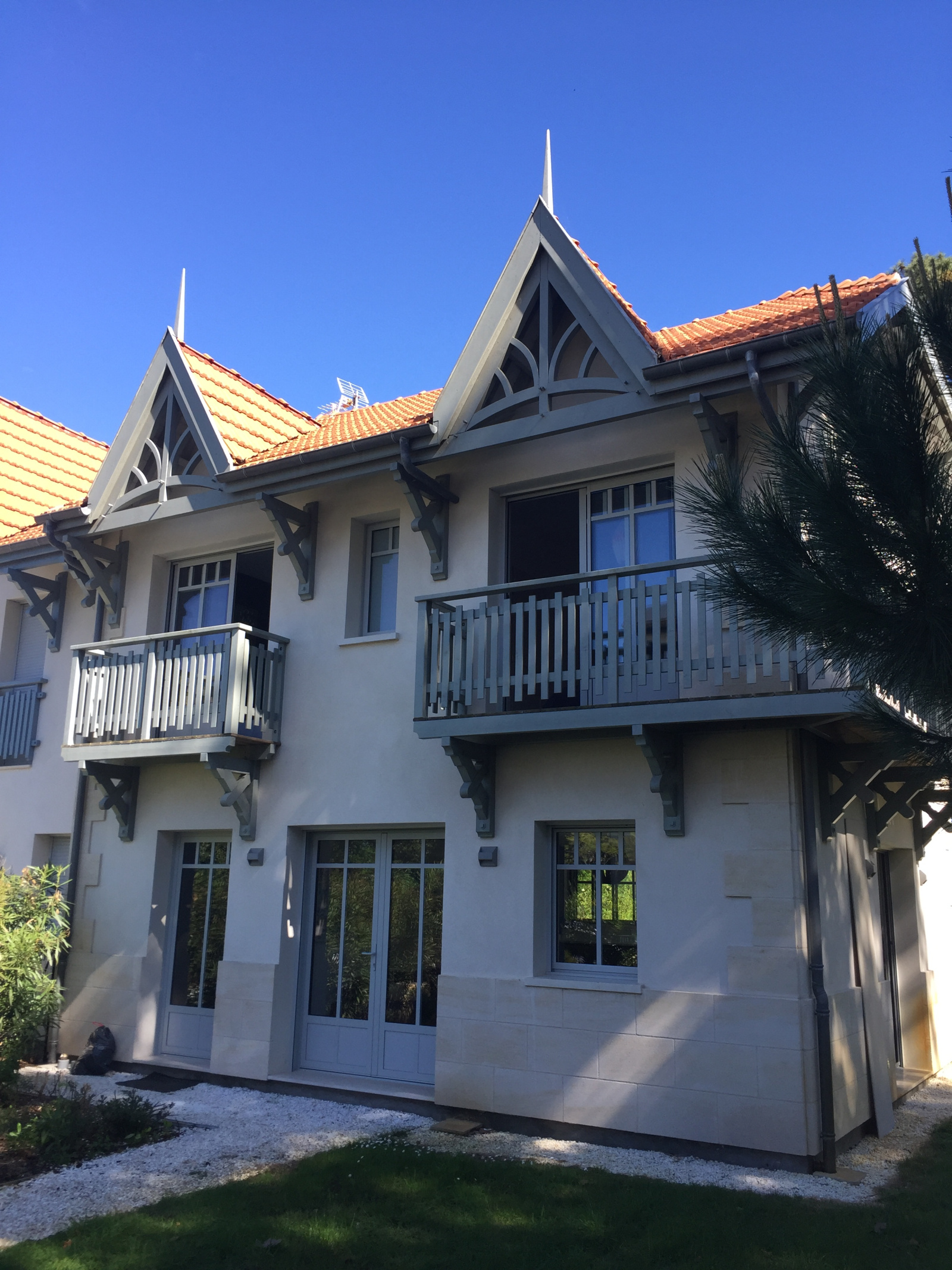 A QUELQUES PAS DU BASSIN, CHARMANTE VILLA MITOYENNE NEUVE IDEAL VACANCES, RDC: ENTREE SEJOUR, CUISINE US ENTIEREMENT EQUIPEE, W.C ETAGE: CHAMBRE AVEC VUE BASSIN 2LITS 0.80 SUR BLACON, SALLE D'EAU COMMUNIQUANTE, W.C, CHAMBRE VUE BASSIN LIT 1.60,PLACARDS, CHAMBRE LIT 1.60 AVEC SALLE DE BAIN ET WC QUARTIER TRES RECHERCHE DE PEREIRE, WIFI